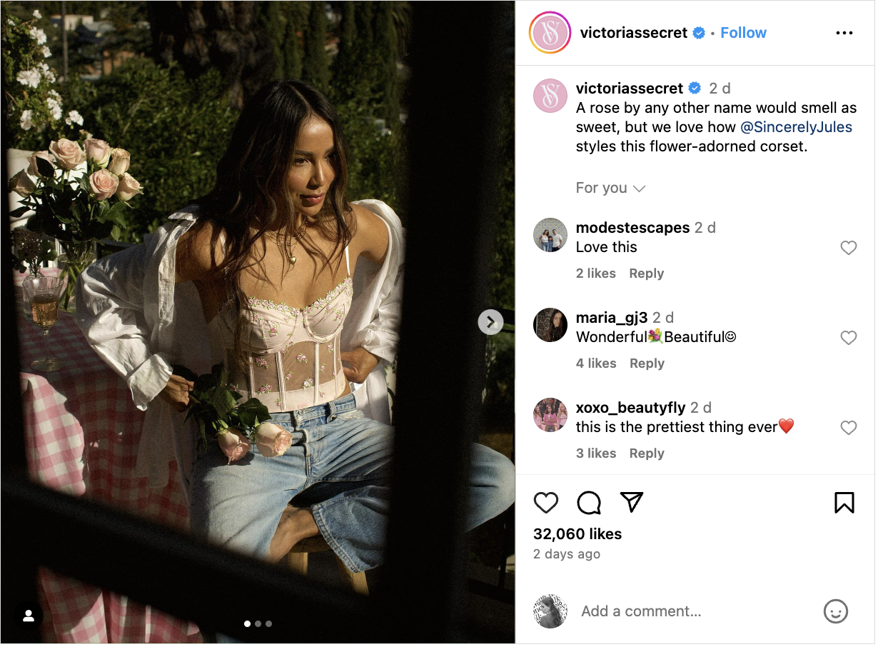 Instagram Post Example of an Influencer Collaboration (Victoria’s Secret x @SincerelyJules)